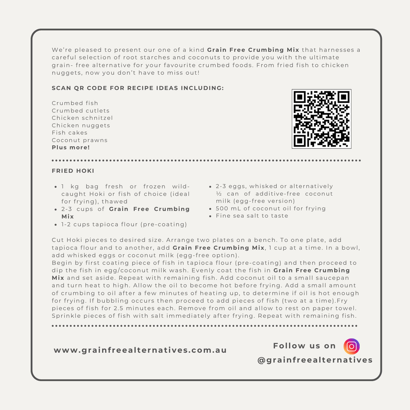 Our Grain Free Crumbing Mix is the perfect solution for those following a gluten-free, nut-free, or lectin-free diet. Made with high-quality, simple ingredients, this mix allows you to enjoy all the flavors of traditional crumbed dishes without any of the grains. Now you can indulge without the guilt!
